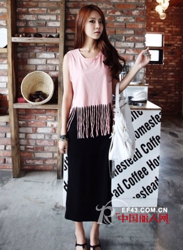 下摆流苏型的造型,相当nice!散开来的下摆直接形成了A字的版型,而且也不会太过宽松。下边搭配直筒长裙,或者是热裤都可以。长裙看起来温婉一些,热裤就比较嬉皮的感觉。