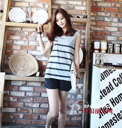 这款条纹无袖T恤,修身长版型更是凸显苗条的身姿,搭配休闲短裤,很有运动风哦,超休闲时尚了。很简约的风格,却让人心动不已,这个夏季值得拥有哦。