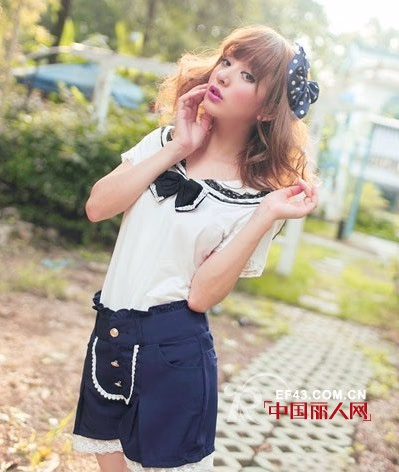 这款很有学院风的娃娃领蕾丝上衣搭配蕾丝高腰短裤,层次感帅气感十足,很减龄的风格哦,超有小女生的感觉了。简单的穿搭就能展示最美身姿与最佳的气质,很不错了。