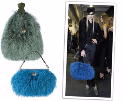 这些由蒙古羔羊毛皮制成的手袋是Emporio Armani2011/2012年秋冬季女装系列的耀眼明星。该款手袋质地柔软、容量超大、非常轻便,时刻散发诱人魅力。必备配饰:Creepers鞋