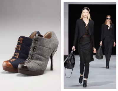 Emporio Armani2011/2012年秋冬女鞋突出了徒步旅行主题。为迎合都市女性,增加了11.5厘米的高跟。