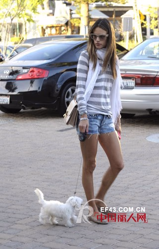 维多利亚的秘密天使超模亚历山大·安布罗休用腰带系扎的方式重新诠释基本款水手T恤的别样穿法,配饰零佩戴令本人气质更加突出,时尚感瞬间UP!