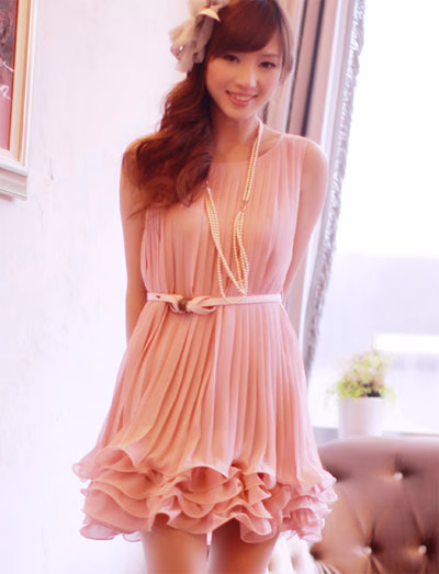 硬线包边的花边裙摆,立体生动。飘逸的雪纺背心裙充满女人味的裙式,也很好的将女性柔美的线条呈现出来。