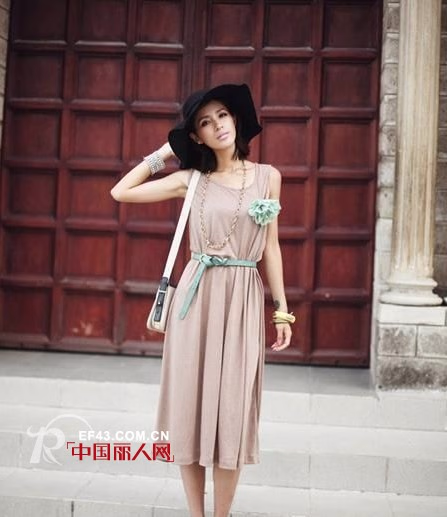 驼色似乎已经成为时尚界公认的,除了黑色和白色以外的另一种百搭色了,无论和红色蓝色黄色或其他颜色搭配都有意想不到的效果很混搭哦,裙子很宽松,很显瘦,搭配腰带刚好可以形成自然地褶皱在腰上,纯色系搭配腰带多层的项链,就算套在西装皮衣牛仔夹克里面,也可以很有型。