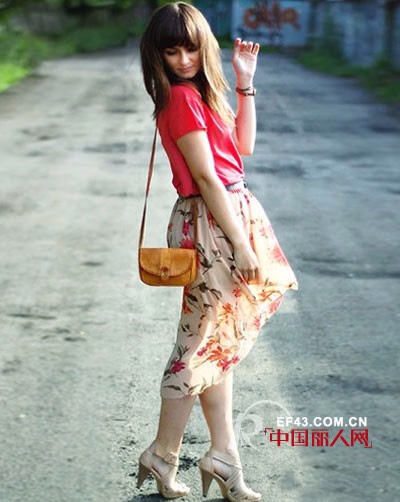 红色T恤的热情诠释青春最是拿手,纯色没有任何图案的T一直是欧美范的最爱。小熟女范一样可以轻松驾驭。搭配丝质长裙,花色的选择就显得尤其重要。稀疏的玫瑰花,本就是成熟的代表,不过色彩的选择与红色T并不冲突,带着小小叛逆色彩的熟女范值得尝试。