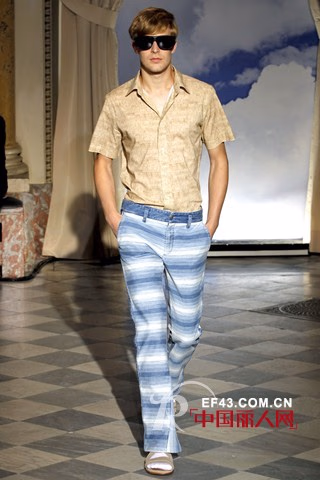 在Viktor & Rolf Monsieur 2012 春夏系列新品男装巴黎秀场,荷兰设计师Viktor Horsting和 Rolf Snoeren为我们展示了他们对于男装的全新理念。高腰的淡蓝色裤装,圆领T恤搭配分层衬衫,及大腿长度的简易运动夹克衫,休闲式的男士晚礼服等都体现了男士悠闲轻松的性情。再加上以蓝色为主,黄色和白色为辅的色调,把本季男装的引入一个轻松愉悦的氛围,更加体现的春夏季这一季节的色彩,让人们能够更加融入这一季节,从而享受这一季节的快乐。