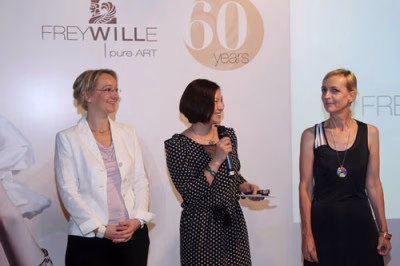FREY WILLE亚太区总监Christine Dengg女士(左),设计总监Barbara女士及中国区市场公关经理胡晓星女士(中)在现场