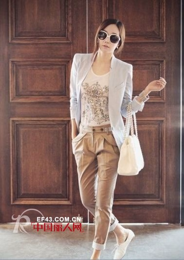 攻略4:谁都知道九分裤显露长腿更胜一筹。但你知道吗?其实最适合萝卜腿的MM哦。不仅露出长脚踝,正装面料的垂坠感,很好掩饰线条轮廓,藏住小粗腿绝不留痕迹!