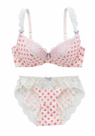 若你以为波点只是标准美国流行文化的衍生物,是继大量另类涂鸦式的图案和又酷又艳的纹路之后又一缺乏甜美气质的密集型设计元素。那这次的秀场主角又是谁?波点、桃心、还有可爱到爆的粉嫩色系!除无需胸垫也能打造出深谷诱惑的绝佳功能之外,蕾丝镶边又能勾勒出完美无痕的效果,更用粉色圆点和纯白底色配出“蜜桃波点”的创意文化,再涌甜美浪潮!