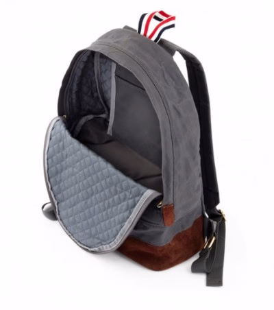 美国的知名设计师Thom Browne同名品牌Thom Browne,Fall/Winter 2011配件新品陆续发布,其中Thom Browne Backpack后背包单品成为众多粉丝的冬季必买单品,灰色麂皮搭配底部咖啡色设计,以菱格纹布料为内里,在背包的手提把手部分则以红白黑间条作为点睛之笔。