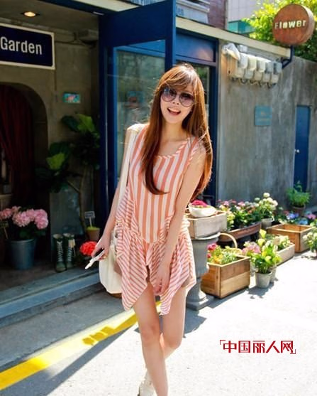 清爽的条纹这两年一直超受宠爱,亮丽的糖果色系让时尚潮搭有了更多的惊喜。简约无袖剪裁,利落大方,不规则的底摆飘逸自然的秀出时髦抢眼气质。可以搭配热裤或者打底裤穿搭。
