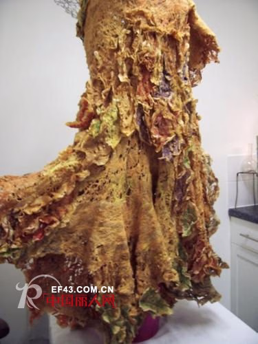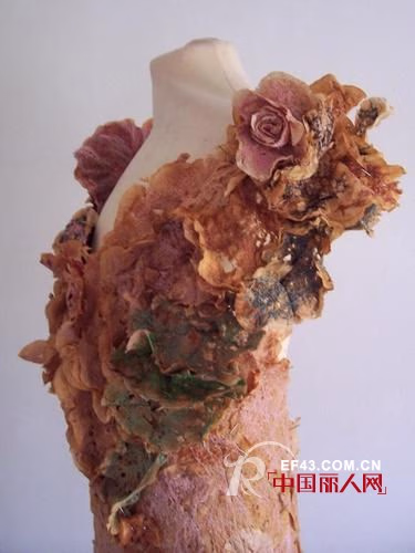 导语:52岁的英国女士Grace Robinson 决定创造一种属于自己的时尚,除了设计和剪裁之外,最重要的就是原料的选择了。于是,别出心裁的她决定用废物利用,将使用过的茶包作为原料来制作时尚服饰。