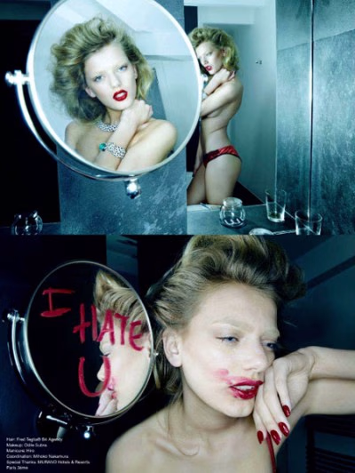 近日,时尚杂志《Vogue》公布了2011年7月刊广告大片,本组大片邀请了90后名模布莱克叶-海楠(Bregje Heinen)拍摄本期刊的大片,内衣上阵,演绎轻松自在的闺房生活。