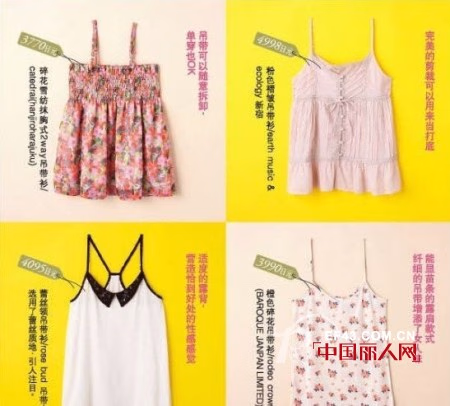 蕾丝领吊带衫/rose bud 吊带也选用了蕾丝质地,引人注目。