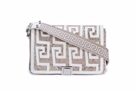 Versace 11春夏小手提包及小巧至中型的手袋继续以对比质料大玩迥异元素。嵌幅及装饰色彩斑烂,主色质料则选用深沉色调或哑面彩色。系列还有多款经典希腊图案挂肩小手袋,用图案装饰替代了品牌LOGO。部份手袋采用金属网料,镶饰Swarovski水晶,绽发闪烁光芒。