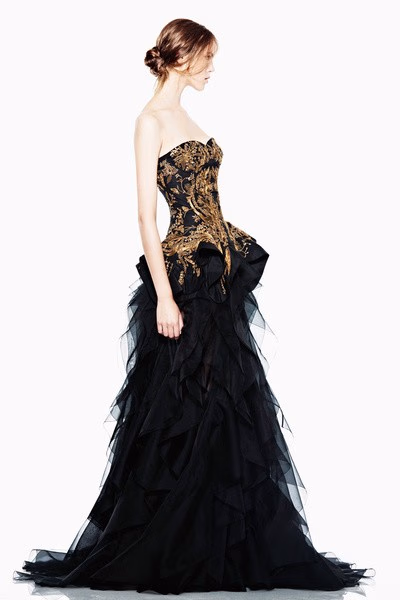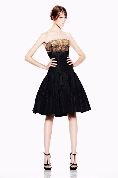 McQueen新任接班人Sarah Burton带来的这个Alexander McQueen 2012度假系列女装中,充满了对McQueen致敬意味的金色刺绣图案与薄纱拖拽裙装的设计让我们再一次回味到最“麦昆”式的霸道浪漫。除此以外,蕾丝和黄色军装设计刚柔并济的组合通过宽腰带的处理展示了宛如爱德华七世时代的剪影作品,也让我们看到了Sarah Burton本人的个人特色和非凡实力。