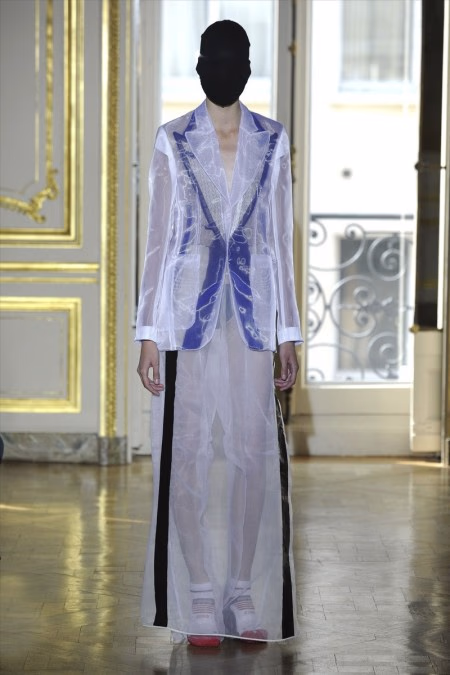 MaisonMartinMargiela2011秋冬高级定制系列(下面品牌简称MMM,设计师使用全称)日前在巴黎发布。MMM再次玩起了无脸人的游戏,似乎是再次对RenéMagritte致敬。不过,比起设计师MaisonMartinMargiela曾经那些实验性十足的作品,这一季高级定制系列其实可以称得上“落入凡间”了。MMM对MaisonMartinMargiela离职前的作品反复“炒冷饭”,只是在材质上做文章,把PVC透视装拿出来唬人,搞点袜子套在高跟鞋外的伎俩,称不上半点前卫。