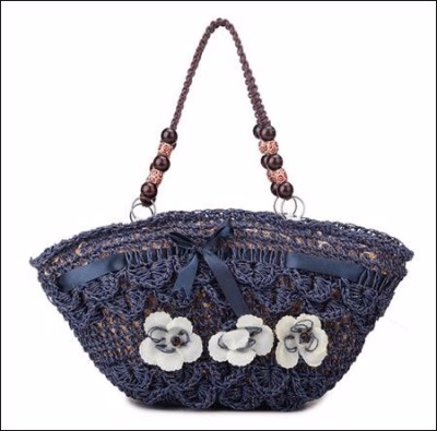 钩花草编有着强烈的民族味道,精美的手工钩花搭配立体花朵的点缀风情万种,里外两层的贴心设计方便存储,是一款出游度假必不可少的包包,这款宝蓝色编织包搭配本季流行的海军条纹连身裙,推荐给正想去海边嬉玩的MM们!度假味道最浓郁的无疑就是一款旅行编织包了。天然材质的草编包在今年更添了新的变化。度假风的搭配去海边游玩,一定能让你成为万众焦点!