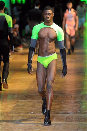 今年的男装品牌设计师们为我们展示了男士比基尼的潜水装,冷黄色的ken-doll发式,热裤和稻穗饰边的套头连体内衣。这些混搭的服装搭配装穿在时装周的模特儿身上看起来还不错,但如果是普通人穿上这些出现在街头,那结果就只有天知道了。尽管如果你有足够的勇气试一试,这也能让你获得更多的力量。