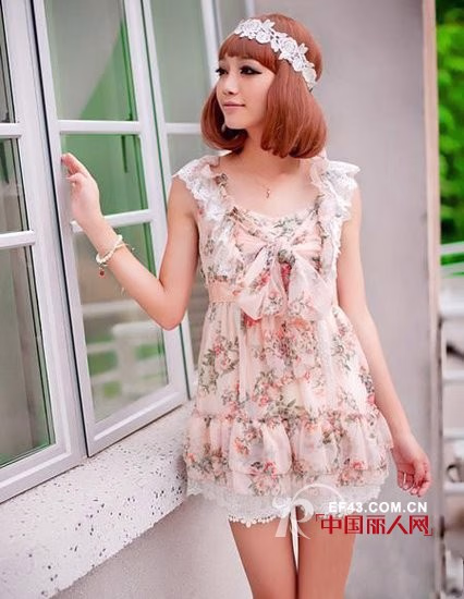 十分素雅的一条小巧印花裙,散发出田园少女一般的纯美气质,让人一眼难忘,轻柔的雪纺塑造出自然流畅的线条美,加上细节处蕾丝的装饰,更添华丽浪漫感,胸前的蝴蝶结装饰俏皮可爱,让你成为人气焦点。