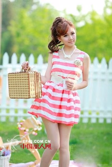明艳生动的红白条纹裙,大牌的设计感,时髦有型,采用清新的条纹让气质更加出众,加上一个别致的蝴蝶结腰带,更添甜美气质,整体造型让人一见倾心。