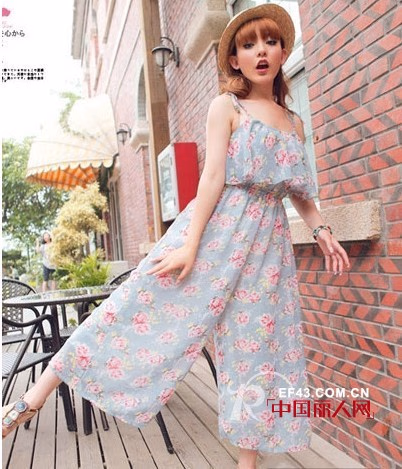 这款明亮的碎花连体裤,很帅气的样式哦,胸前荷叶边的设计,大方独特。裤子是宽松的版型,轻松舒适,胖瘦的MM都能穿哦。