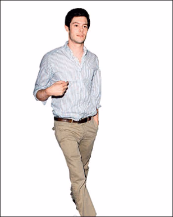 条纹衬衣和浅卡其色长裤在日常生活中是最常见的单品,当白色竖条纹衬衣和浅卡其色长裤间用复古棕色腰带和做旧棕色平底皮鞋串联起来的时候,简单利落的时髦感便出来了。
