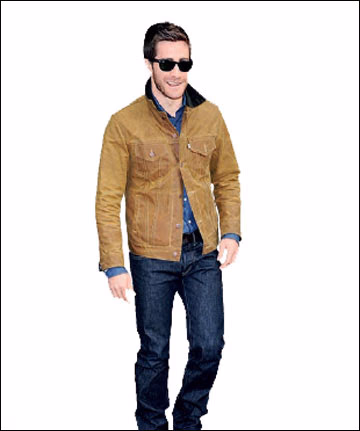 宝蓝色是今年最流行的色彩很难看到Gyllenhaal穿得这么有型,棕黄色牛仔夹克罩着宝蓝色衬衣,牛仔裤再搭猎装皮鞋,凸显着传统的男人味和时下的男性时尚。