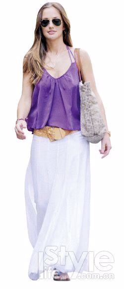 吊带短上衣,搭配曳地长裙,本是这季最时髦的装扮,可是,系得过低的宽腰带却毁坏了整个比例,不留意就成为反面例证。
