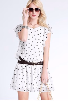 天秤座是美女最多的星座,天秤美女优雅随和,社交能力一流。这款飘逸的荷叶袖连衣裙就是为她们而设计的,波点风格和袖子部分的荷叶边充分体现她们的文艺气质。