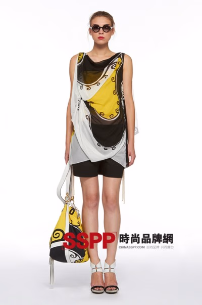黛安·冯芙丝汀宝(DianevonFurstenberg)一向擅用印花,2012早春度假系列女装里的印花图案,更有涂鸦艺术的感觉,将浪漫的艺术气息尽情展示出来。除了几何图形之外,如儿童剪纸般拙朴的植物图案、扭曲的年轮、东方风情的金色鳞片图案都被印上身,想象力十足的图案让简洁随性的搭配有了更奇妙的视觉效果。