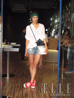 图为霖杰时尚的名模高倩宁现身活动现场,白衬衫+牛仔短裤+Converse鞋,并非身着华服的她,凭借着出色的镜头感和不俗的时尚品味,尽展简单Chic风。