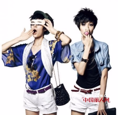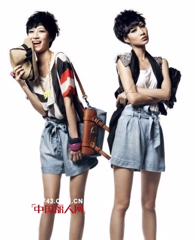 左 A面:撕边超短裤搭配带有印花的真丝上衣,宽大的肥袖子与紧俏的超短款式相呼应。前卫与民族的混搭恰到好处地碰撞出时髦亮点。