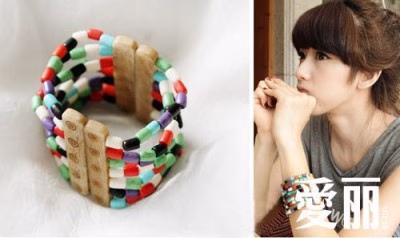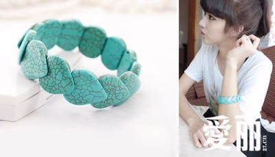 淡淡的孔雀蓝颜色手镯,心形的图案加上龟裂纹的装饰,清新又自然,是今夏韩国MM的最爱款式。