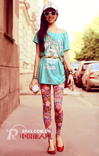 荧光大T恤+碎花Legging