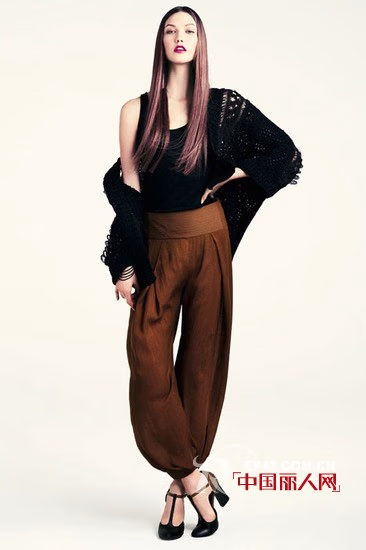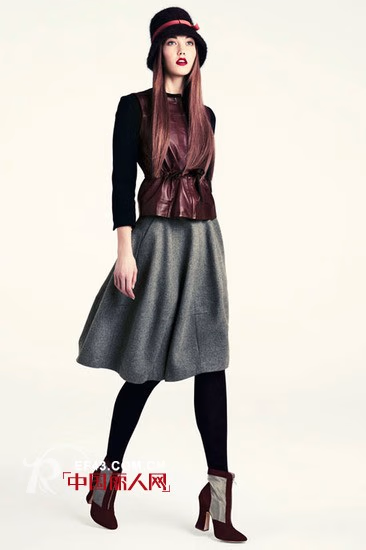 这次的秋冬成衣含有些许的Grunge(与垃圾摇滚乐相关的一种时尚,如宽松的衣服、破旧的牛仔裤等)和哥特风格,却并没有被过分渲染;使得简约中多了一丝不羁的意味。而每件单品的搭配灵活性和时尚度也丝毫没有减弱。从中我们可以看到最近非常流行的感光面料阔腿裤、饰有流苏的修身中裙、军装感廓型皮夹克、娇俏的斗篷式大衣以及轻松随意的毛衫、针织衫。