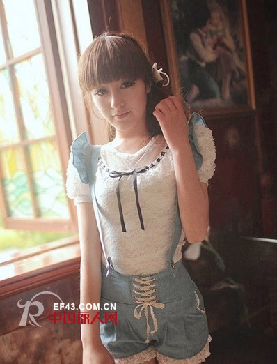 甜美的镂空蕾丝衣精致华贵,塑造纯洁迷人的公主形象,搭配一条甜美俏皮的背带短裤,勾勒出曼妙身形,演绎出最美好的萝莉气质,蕾丝花边的修饰让整。