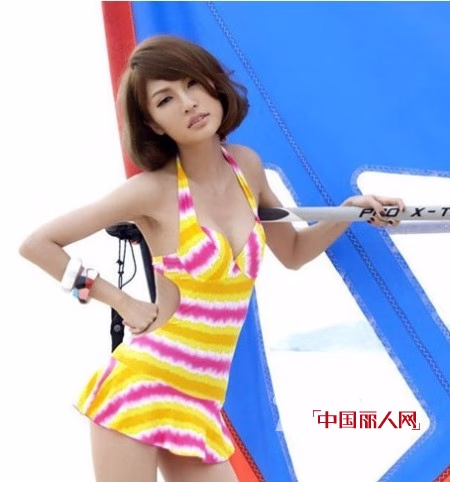 缤纷竖条纹的连体比基尼,修身提臀让你拥有性感女神一般的妖媚姿态,肩带深V的设计很显胸型,加上竖条纹,有收缩感哟!