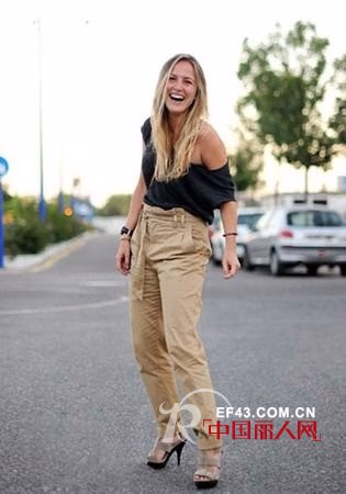 工装裤现在流行带有同色腰带,穿着时散发酷感魅力。