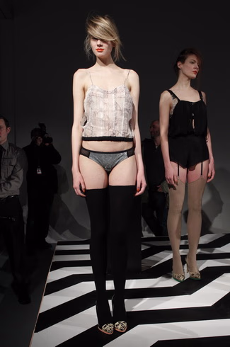 上个世纪八十年代由Jean Paul Gaultier和Dolce &Gabbana引导的内衣外穿风潮近来也有回归的趋势,如Rihanna和Lady Gaga就用外穿的性感内衣作为她们的舞台装扮,而众多明星和名模们在去年的各大派对上更是给予了吊袜带及长筒丝袜足够的重视,其中包括Alice Dellal、Taylor Momsen、Lily Allen,甚至年逾不惑的Kylie Minogue。