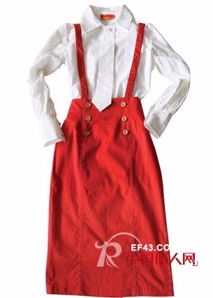 时尚解析:红色高腰线的可脱卸背带长裙,既可以当高腰长裙,又可以当高腰背带裙,很实用,而且过膝、双排扣、铅笔裙设计,使得它本身就极富有女人味,所以搭配白衬衫会很利落,颜色的差异也可以造成一种视觉冲击力,但这样的长款背带裙只适合身材高挑的女人。