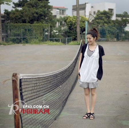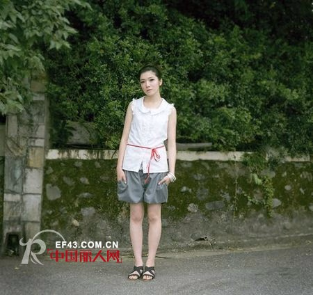 无袖背心款式荷叶领子白色纯棉上衣,搭配西装剪裁的裤裙,是非常适合上班一族MM的款式,大方自然,简约动人。短的上装能更好地突出抓皱的宽松裤裙设计,不要忘记配上腰间红色的丝带蝴蝶结腰带,整体的效果马上高档了一个层次。