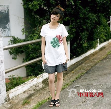 看似简单的白色T恤,搭配西装剪裁裤裙,简约时尚。T恤两则出的大块图案,时尚感十足,这身装扮走在街上,看上去很简单,却在不经意间给人制造出惊喜。