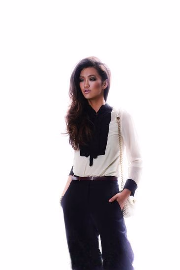 1.滚边衬衫可以搭配阔腿裤增添帅气,裤子的色彩可以参考滚边的颜色;