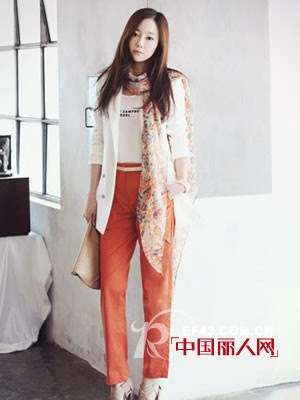 橙色的九分裤颜色亮丽,腿短的MM如果想很好的驾驭这种吸引人眼球的裤子,最好选择高腰的款式,将T恤塞进腰中,搭配一条细细的皮带和一双高跟凉鞋,打造一双回头率极高的双腿。