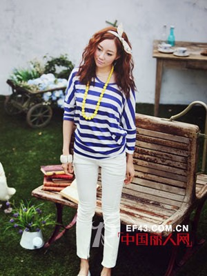 过瘦也不是好事儿,容易给人弱不禁风的感觉。在夏天,这种MM最好选择浅色系的裤装,比如白色紧身九分裤,给人视觉膨胀感,搭配时下最热的条纹上装,清爽又时尚。