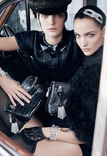 Louis Vuitton(路易威登)2011秋冬广告大片主题围绕崇拜应召郎展开,夸张的外套造型。Marc Jacobs(马克·雅可布)谈到他的主题是说,当他看到Charlotte Rampling(夏洛特·兰普林)出演电影The Night Porter《午夜守门人》中Lucia戴军帽的形象时变获得了启发…