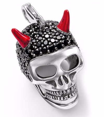 红色搪瓷魔鬼角骷髅头骨吊坠$2,990