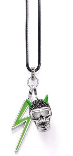 萤光绿搪瓷闪电吊坠($870)、萤光绿搪瓷魔鬼角骷髅头骨吊坠($2,990)