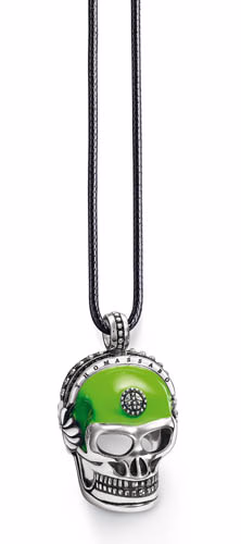 萤光绿搪瓷头盔骷髅头骨吊坠$3,690、红色搪瓷魔鬼角骷髅头骨吊坠$2,990
